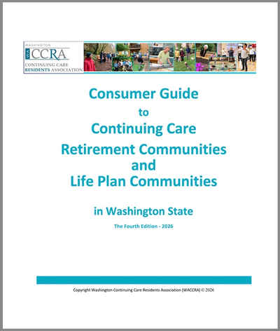 Our new Consumer Guide provides critical information for seniors considering investing in, and moving into, a CCRC in Washington State. You will find sections on the types of contracts available (A, B, C, D), independent living options, levels of healthcare (Assisted Living, Skilled Nursing, Memory Care), financial considerations, and ownership and governance characteristics. A helpful checklist of amenities makes decision-making easier.