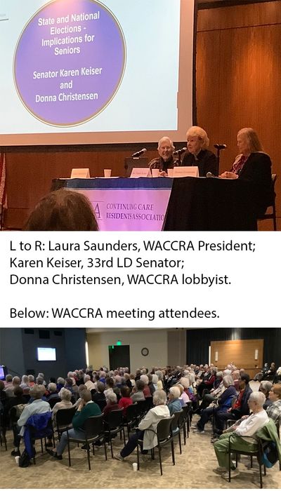 Laura Saunders moderated a discussion with State Senator Karen Keiser (33rd Legislative District) and WACCRA Lobbyist Donna Christensen about Legislative processes and what each of us can do to support WACCRA's Legislative efforts going forward.